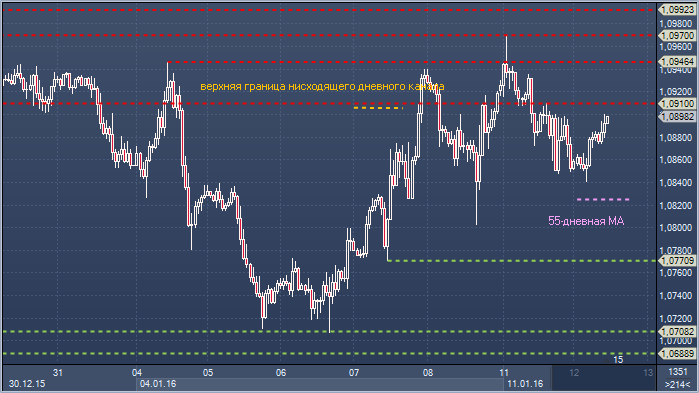 Евро/доллар. Технический взгляд Сопротивление 4: $1.1016 - 100-дневное скользящее среднее значение Сопротивление 3: $1.0992 - максимум 28 и 29 декабря Сопротивление 2: $1.0970 - максимум 11 января Сопротивление 1: $1.0910 - часовое сопротивление 11 января Цена: $1.0898 Поддержка 1: $1.0829 - 55-дневное скользящее среднее значение Поддержка 2: $1.0770 - минимум 7 января Поддержка 3: $1.0708 - минимум 6 января Поддержка 4: $1.0689 - максимум 25 ноября, в настоящее время - поддержка