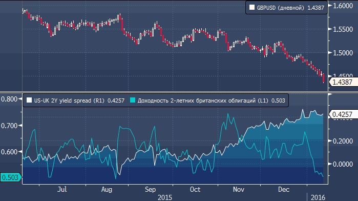 Фунт в последнее время в опале, и сегодня британская статистика преподнесла медведям, и до этого чувствовавшим себя весьма уверенно, подарок: данные по промышленному производству оказались значительно хуже ожиданий, послужив катализатором для падения курса к свежим минимумам с 2010 года. Отчеты из Великобритании в последнее время носили неоднородный характер, а рынок, ранее живший темой восстановления экономики, стал заметно чувствительнее к неприятным сюрпризам. Осложняющим фактором остается вопрос о том, останется ли Великобритания в ЕС или нет, и нисходящее движение фунта в последние недели хорошо иллюстрирует пошатнувшееся доверие инвесторов. Дилеры отмечают, что медведи в ближайшее время могут взять паузу — 14 января состоится заседание Банка Англии, но, если центробанк займет осторожную позицию, это будет способствовать поддержанию атмосферы неопределенности, неблагоприятной для фунта. Вместе с тем, участники рынка и так не ждут повышения ставок вплоть до февраля 2017 года, и с точки зрения развития нисходящего тренда дальнейшая корректировка ожиданий, вероятно, будет не столь значимой, сколько страхи относительно референдума. Техническая картина, между тем, остается конструктивной для медведей по фунту, и актуальной целью на ближайшую перспективу являются минимумы 2010 в районе $1.4227.