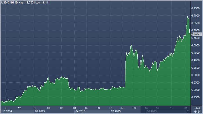 Масштабы оттока капитала из Китая за последний год выросли на фоне замедления китайской экономики и первого за десятилетие повышения ключевой ставки ФРС. Это позволяет предполагать, что Пекин может быть вынужден позволить юаню осторожно снижаться. Валютные резервы Китая в 2015 год упали на 13%, до 3,33 трлн долларов США, достигнув минимума за три года после того, как Народный банк Китая истратил значительный запас долларов, пытаясь уменьшить падение юаня.