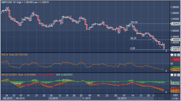 Неожиданно негативные данные по промышленному производству в Великобритании за ноябрь привели сегодня к резкому падению курса фунта стерлингов. Учитывая тот факт, что технически британская валюта выглядит очень перепроданной, как по отношению к доллару, так и против евро, мы сомневаемся, что публикация решения Комитета по монетарной политике Банка Англии в предстоящий четверг сможет оказать существенное давление на и без того перепроданную валюту. От 1.4350 курс фунт/доллар выглядит привлекательным для краткосрочных спекулятивных покупок, поскольку в четверг мы вполне можем наблюдать реализацию биржевого принципа «покупай на слухах — продавай на фактах». Мы считаем, что завершение этой торговой недели не будет столь негативным для фунта, как ее начало. Перспектива предстоящей торговой недели открывает потенциал для восходящей коррекции в паре фунт/доллар вплоть до 1.4690, где и можно разместить цели по спекулятивным лонгам.