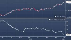 Восходящее движение доллар/канады может показаться чересчур агрессивным, однако быки чувствуют себя весьма уверенно, и в Scotiabank отмечают, что сложившаяся обстановка на рынке нефти дает им на это полное право. Напряженность продолжает нарастать, и опасения роста панических настроений в случае потери опоры в районе $30 оказывают паре хорошую поддержку. В пользу дальнейшего роста курса также говорят и показатели трендовых индикаторов, и в Scotiabank не видят особых препятствий для доллар/канады на пути к C$1.45. В BBH также видят возможность для обновления максимумов, обращая внимание на то, что негативной для луни остается и ситуация в самой Канаде — экономические индикаторы в последнее время дали повод говорить о том, что динамика цен на нефть (канадская West Canada Select имеет большее влияние на экономическую активность, чем предполагалось ранее. В условиях продолжающегося падения «черного золота» позиции медведей выглядят более прочными, и все больше инвесторов склоняется к мысли о том, что Банк Канады понизит ставки.