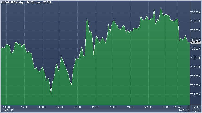 В начале торговой сессии четверга рубль дорожает против доллара и евро на фоне попыток коррекции цен на нефть после вчерашнего вечернего коллапса. Как следует из результатов опроса, проведенного ВЦИОМ, в декабре наблюдался рост пессимизма россиян относительно перспектив рубля. 52% опрошенных сказали, что хранят сбережения в российской валюте, в 43% признались в отсутствии каких бы то ни было сбережений. Отметим, что вчера Ксения Юдаева, первый зампред правления Банка России, сказала о том, что регулятор опубликует свой новый базовый сценарий в марте. В целом, по мнению госпожи Юдаевой, несмотря на текущее снижение рубля, цель по инфляции в 4% достижима к концу 2017 году. Также было отмечено, что Россия не откажется от плавающего курса рубля, а индекс потребительских цен будет снижаться медленнее, чем ожидалось. Вчера же рядом заявлений отметился и Владимир Колычев, директор Департамента долгосрочного стратегического планирования минфина РФ. По его словам, в последние месяцы снижение рубля на 10% приводило к росту инфляции на 1.3%, однако в будущем эта связь ослабеет. Этому будет способствовать меньшая зависимость экономики от импорта, а временной лаг между снижением рубля и ростом инфляции составляет 6 месяцев.