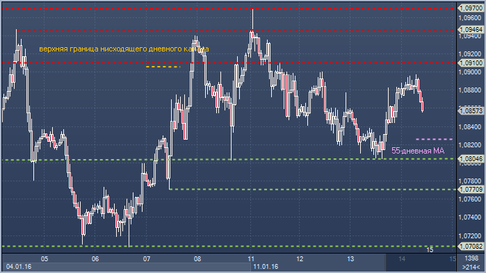 Евро/доллар. Технический взгляд Сопротивление 4: $1.1011 - 100-дневное скользящее среднее значение Сопротивление 3: $1.0992 - максимум 28 и 29 декабря Сопротивление 2: $1.0970 - максимум 11 января Сопротивление 1: $1.0910 - часовое сопротивление 11 января Цена: $1.0857 Поддержка 1: $1.0805 - минимум 13 января Поддержка 1: $1.0770 - минимум 7 января Поддержка 2: $1.0708 - минимум 6 января Поддержка 3: $1.0689 - максимум 25 ноября, в настоящее время - поддержка