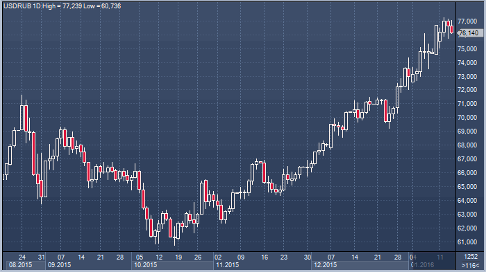 Татьяна Орлова, старший экономист из Royal Bank of Scotland, ожидает в дальнейшем ослабление курса рубля и рекомендует инвесторам отдать предпочтение покупкам в паре доллар/рубль на попытках снижения. Эксперт прогнозирует курс доллара к рублю на уровне 80.00, если цены на нефть марки Brent упадут до 26 долларов за баррель. Если же цены на Brent упадут до 16 долларов за баррель, курс доллар/рубль поднимется выше 90.00. Дальнейшее снижение нефтяных цен заставит инвесторов быть более обеспокоенными рисками в отношении России. RBS установил рекомендацию «хуже рынка» для еврооблигаций Россия-30.