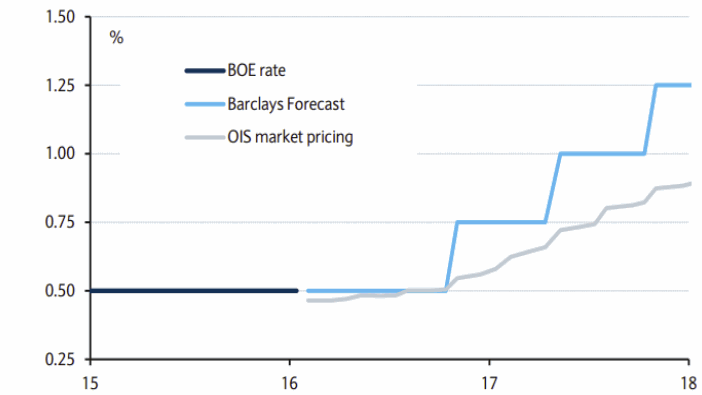 Неопределенность, связанная с референдумом по вопросу нахождения Великобритании в составе Евросоюза, позволяет предположить, что первое повышение ставок вряд ли состоится до результатов этого референдума.
