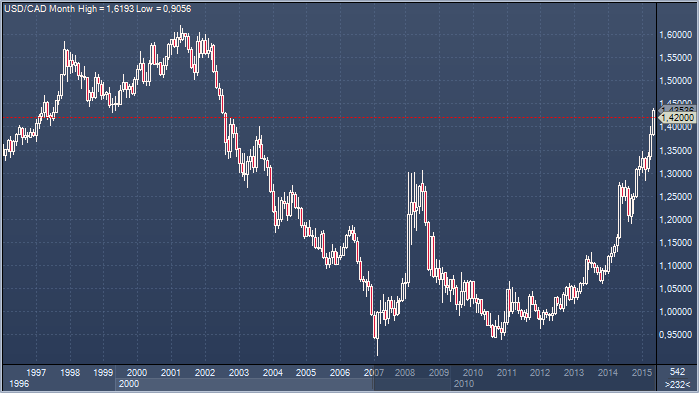 Доллар/канаде вчера не удалось пробиться выше С$1.44, и сегодня пара сдает позиции, однако настрой остается бычьим, а спады сохраняют весьма ограниченный характер. Аналитики Bank of America Merrill Lynch отмечают, что пара остается выше сорок второй фигуры, и обращают внимание на то, что закрытие недели выше будет сильным позитивным сигналом. При таком развитии событий можно будет говорить о прорыве важной зоны сопротивления, и смещении фокуса к уровням в области C$1.47/C$1.48. Кроме того, стоит учитывая формирование округлого основания, очень похожего на вершину 2002 года, и в BoAML полагают, что в перспективе долгосрочный восходящий тренд может увлечь доллар/канаду к C$1.61.