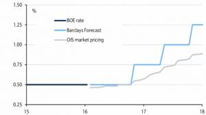 В свете ослабления экономической активности, отсутствия внутреннего инфляционного давления и увеличения глобальных рисков, в дополнение к рискам, связанных с референдумом по поводу ЕС, мы передвинули наши ожидания первого повышения ставок Банком Англии со 2 на 4 квартал 2016 года.