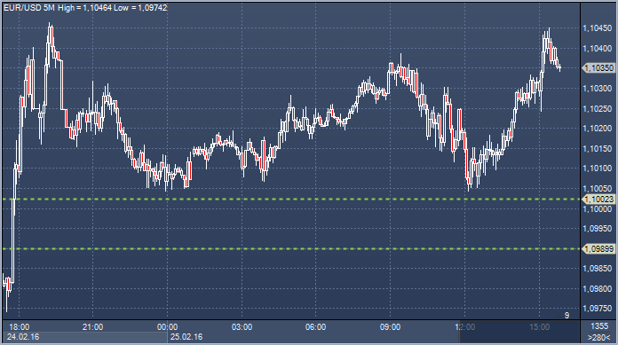 Курс евро к доллару поднялся к 15.50 мск в четверг до $1.1037 с $1.1013 на закрытие сессии в среду. Евро/доллар поднимался ранее с $1.1005 до $1.1045, остановившись перед максимумом среды $1.1046. Сопротивление находится чуть выше этого уровня, на $1.1050, эта область также охватывает 200-дневное скользящее среднее значение на $1.1048, а последующим сопротивлением станет $1.1060 (максимум 15 декабря). Стоимость доллара к иене выросла в ходе торгов до 112.52 иены против 112.18 иены на закрытие предыдущей сессии. Пара евро/иена торгуется на уровне 124.24 иены по сравнению с 123.55 иены накануне. Тем временем фунт стерлингов восстанавливается после падения до минимума с 2009 года на данных о том, что экономика Великобритании в четвертом квартале 2015 года увеличилась на 0,5% в помесячном и на 1,9% в годовом выражении. Курс фунта к доллару вырос на 0,4%, до $1.3983 за фунт, к евро - на 0,2%, до 1.2664 евро за фунт