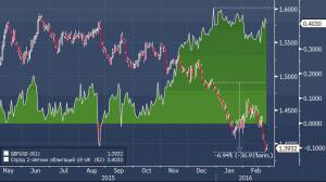 Евро не сильно отреагировал на данные по инфляции в 19 странах еврозоны в январе, опубликованные Евростатом в четверг. По окончательной оценке, инфляция ускорилась до 0,3%, что ниже прогнозов аналитиков, ожидавших показатель на уровне 0,4. Эта статистика увеличивает шансы на то, что Европейский центральный банк (ЕЦБ) на совещании в марте будет вынужден ввести дополнительные меры стимулирования экономики. "Мы можем видеть, что состояние еврозоны все еще довольно шаткое и ожидания по уровню инфляции низкие. Это увеличивает вероятность того, что ЕЦБ предпримет что-то более агрессивное", - рассказала стратег Commerzbank AG во Франкфурте Тху Лан Нгуен. В то же время британская валюта вновь вернулась к снижению по отношению к американской на фоне сохраняющихся опасениях из-за потенциального Brexit (выхода Великобритании из Евросоюза). В среду пара падала до отметки в 1.3879 доллара за фунт, пробив минимум с начала 2009 года в 1.3881 доллара за фунт