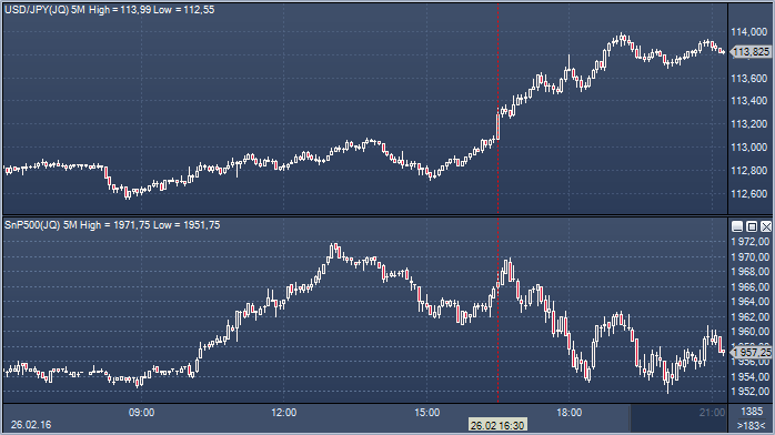 Доллар усилил рост после выхода второго релиза по ВВП США, который реанимировал ожидания возможного ужесточения политики ФРС в 2016 году. Реальный ВВП США в четвертом квартале 2015 года, согласно второй оценке, вырос на 1% в годовом выражении, хотя аналитики ожидали цифру роста в 0,4%. Ранее сообщалось о росте на 0,7%. В третьем квартале ВВП США рос на 2%. Реальные темпы роста потребительских расходов в четвертом квартале замедлились до 2% с 3% кварталом ранее. В 2015 году в целом американская экономика выросла на 2,4% второй год подряд, как и сообщалось в январе. Главным фактором улучшенного пересмотра динамики ВВП стало увеличение товарных запасов компаний. В 2016 году экономисты ждут усиления роста американской экономики в силу того, потребители, нашедшие работу, увеличить совокупные расходы, чему будет способствовать и подешевевшее топливо. Товарные запасы увеличились в октябре-декабре на $81,7 млрд в пересчете на годовые темпы, их отрицательное влияние на рост ВВП составило всего 0,14 процентного пункта (п.п.), а не 0,45 п.п., как было объявлено ранее.