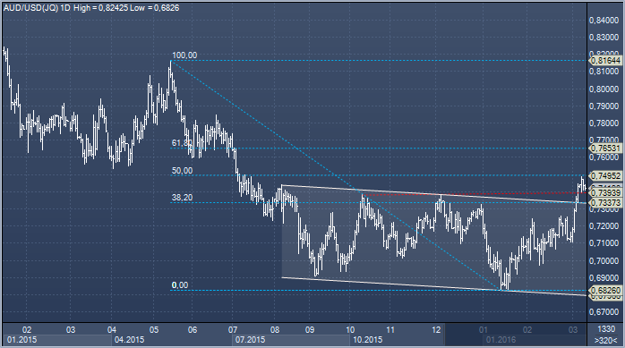 Азиатские рынки акций открылись снижением, при этом настрой остается подавленным, что поддерживает давление на доллар/иену, который, впрочем, пока остается выше Y112.40, а также способствует снижению аусси/доллара. Потери австралийской валюты пока носят сдержанный характер и выглядят как вполне ожидаемое развитие коррекции после роста последних дней и прорыва выше $0.7400. Резкое улучшение динамики цен на железную руду и в целом ситуации на рынке сырья, а также последние изменения в технической картине (в частности, закрытие выше 50-недельной sma) благоприятны для аусси, но не стоит думать, что путь к свежим многонедельным максимумам будет легок. Последние комментарии заместителя главы РБА в целом носили мягкий характер, а слабая статистика из Китая является подтверждением того, что внимание центробанка к событиям зарубежом вполне оправдано. Прорыв выше $0.7495/00 (50.0% от падения с 15/05/15) поддержит мнение о наличии потенциала для развития коррекции аусси в направлении $0.7605 (первоначальная цель двойного основания) и $0.7653 ( 61.8% от падения с 15/05/15), но способность аусси к более выраженному росту пока внушает сомнения, как и устойчивость ралли цен на железную руду, которое, по мнению многих участников рынка, во многом стало следствием ликвидации шортов, а не роста спроса. Подобной точки зрения придерживаются и стратеги Commonwealth Bank of Australia. Они отмечают, что ралли железной руды основано на перепаде в настрое участников рынка, но он не оправдан: фундаментальные факторы остаются неблагоприятными, в частности объем строительства в Китае продолжает сокращаться.