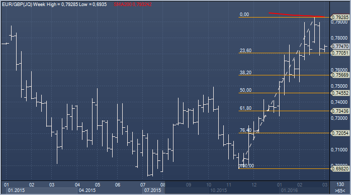 Техническая картина по евро/фунту остается довольно медвежьей. 24-26 февраля пара тестировала 200-недельную МА, после чего рухнула к фигуре stg0.77 (область коррекции 23.6% от роста с минимумов прошлого ноября) и теперь довольно неуклюже пытается скорректироваться. Мы видим риски дальнейшего снижения евро/фунта к stg0.7565 (коррекция 38.2% от того же движения), а то и stg0.7454 (50%) уже на этой неделе. Похоже, аптренд завершен, и на среднесрочную перспективу мы занимаем нейтральную позицию.