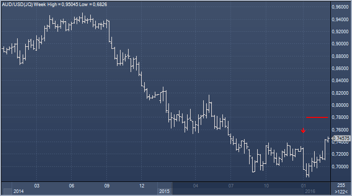 В первые недели 2016 года аусси/доллар попал в волну продаж и рухнул до нового шестилетнего минимума ниже $0.69. Затем с середины января пара прибавила 7% на фоне стабилизации аппетита к риску, довольно «ястребиной» позиции РБА, сохранившего в феврале ставку на уровне 2%, а также роста оптимизма относительно перспектив австралийской экономики. Дополнительную поддержку аусси оказало снижение ожиданий повышения ставок в США в этом году, благодаря чему теперь повышение ключевой ставки на 0.25% полностью учтено в ценах лишь на начало 2017 года. Это привело к общему ослаблению доллара, наиболее очевидному в парах с высокодоходными товарными валютами. До тех пор, пока инвесторы сохраняют аппетит к риску, мы прогнозируем рост аусси/доллару к $0.78 к концу года.