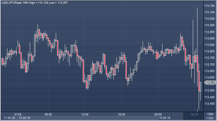 Банк Японии не внес никаких изменений в денежно-кредитную политику. Отрицательная ставка осталась на уровне минус 0.1%, программа QE на уровне 80 трлн. иен. Иена показала довольно волатильную реакцию на опубликованную информацию. Минорная динамика на рынках акций сохранилась, как и спрос на японскую валюту, выполняющую роль безопасного актива. Также росту курса иены способствовало падение оффшорного курса юаня после новости о том, что правительство Китая планирует введение налога на валютные транзакции. На стороне покупателей иены активность проявляли корпоративные счета. Их действия привели к исполнения ордеров на продажу (sell-stop) ниже 113.50, которые принадлежали спекулянтам, что увеличило темпы нисходящего движения в доллар/иене.
