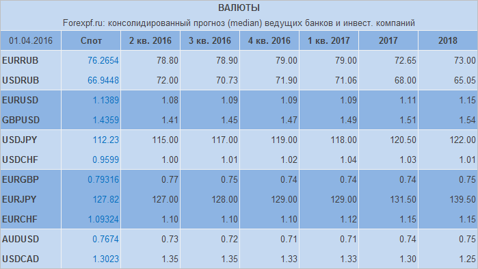 Представляем вашему вниманию таблицу консолидированных прогнозов (median), актуальных на текущую дату (позволяют оценить настроения рынка и обозначают «средний градус по больнице»). Расчет медианного значения включает лишь те прогнозы крупных банков и инвестиционных компаний, которые были опубликованы не позднее 3 месяцев от текущей даты. Однако по статистике превалирующее большинство респондентов не имеют прогноза старше 30 дней от текущей даты.