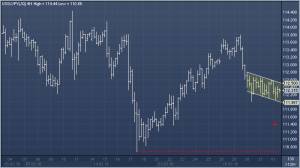 Во вторник доллар/иена протестировал вершину шестинедельного канала и резко развернулся, сформировав длинную медвежью свечу. Теперь пара торгуется в области середины этого коридора (Y111.97), и падение ниже откроет дорогу для теста недавних минимумов около Y110.67, а затем и основания канала около Y110.00