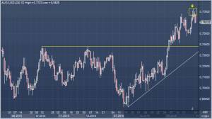 Тем не менее, очевидно, что глава РБА Гленн Стивенс желал бы видеть курс аусси/доллар не выше уровня 0.7000. Даже если во вторник ставка не будет снижена, велика вероятность того, что инструкция Центробанка будет однозначно выказывать недовольство завышенным курсом национальной валюты, намекая на возможность сокращения ставки на ближайших заседаниях. В общем и целом расклад не в пользу того, чтобы находиться в лонгах по австралийскому доллару.