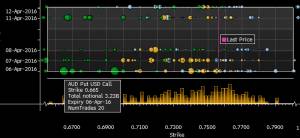 Аусси/доллар: $C0.6650($A3.23 млрд. Put), $C0.69500($A2.9 млрд. Put), $C0.7400($A1.04 млрд. Mixed) Как видно, существенно ниже текущей цены экспирируется большое количество путов. Реализованное укрепление австралийского доллара стало неожиданностью для рынка
