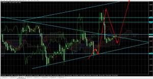 здесь мы видим ограничение по трендовой и не отработанную стрелку-которая нам и говорит о дальнейшем движении фунта...