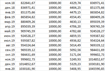 я просто просчитал что если ежемесячно по 10к откладывать в банк то к 2020 году будет вот такое состояние дел