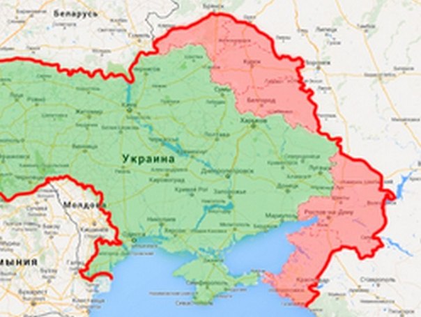 В социальной сети Фейсбук распространили «карту Коломойского» — карту Украины с присоединенными к ней некоторыми соседними российскими областями.