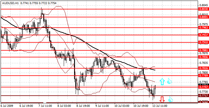Я рекомендую открывать длинные позиции после пробоя по итогам часа сопротивления на уровне 0.7747 с целью повышения к сопротивлению на уровне 0.7789 и в случае ее пробоя к 0.7816. Стоплосс при данной стратегии можно разместить на уровне 0.7704.