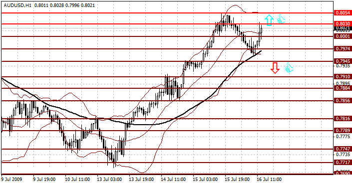 Я рекомендую открывать длинные позиции после пробоя по итогам часа сопротивления на уровне 0.8030 с целью повышения к сопротивлению на уровне 0.8054 и в случае ее пробоя к 0.8073. Стоплосс при данной стратегии можно разместить на уровне 0.7988.