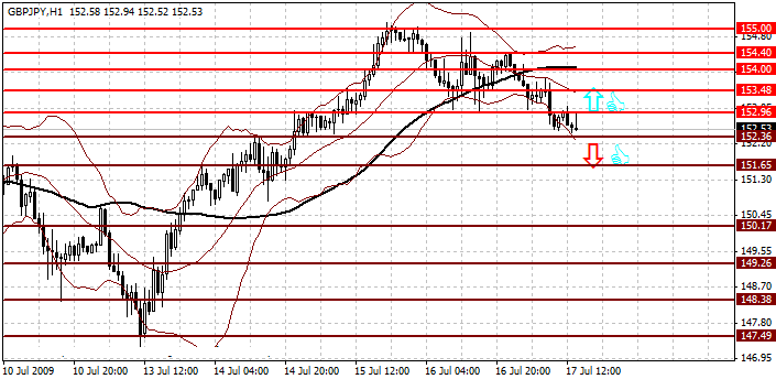 Я рекомендую открывать длинные позиции после пробоя по итогам часа сопротивления на уровне 152.96, с целью повышения к к сопротивлению на уровне 153.48 и в случае его пробоя по итогам часа к 154.00. Стоплосс при данной стратегии можно разместить на уровене 152.30.