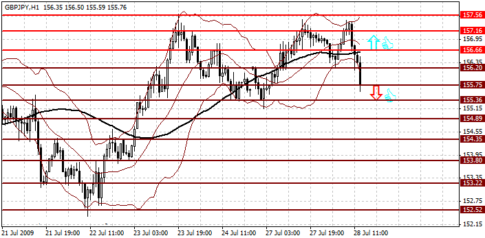 Я рекомендую открывать короткие позиции после пробоя по итогам часа поддержки на уровне 155.75 с целью снижения к поддержке на уровене 155.36 и в случае ее пробоя к 154.89. Стоплосс при данной стратегии можно разместить на уровне 156.37.