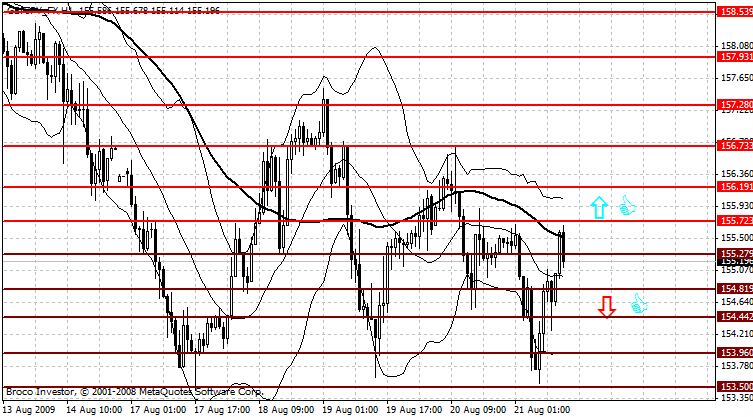Я рекомендую открывать длинные позиции после пробоя по итогам часа сопротивления на уровне 155.72, с целью повышения к к сопротивлению на уровне 156.19 и в случае его пробоя по итогам часа к 156.73. Стоплосс при данной стратегии можно разместить на уровене 155.12.
