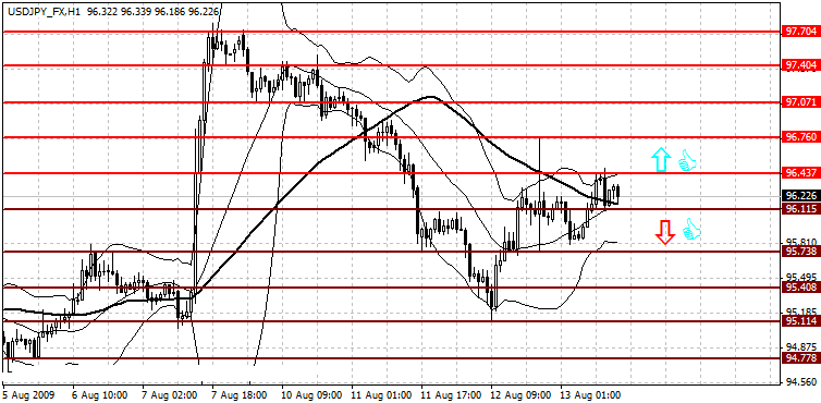 Я рекомендую открывать длинные позиции после пробоя по итогам часа сопротивления на уровне 96.44, с целью повышения к сопротивлению на уровне 96.76. Стоплосс при данной стратегии можно разместить на уровне 96.07.