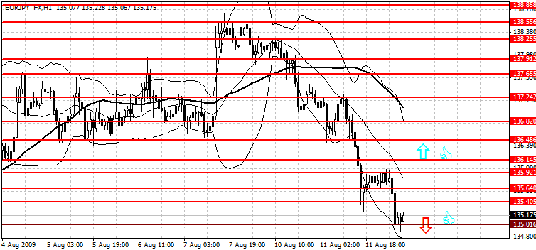 Я рекомендую открывать короткие позиции при пробое поддержки на уровне 135.01 по итогам часа, с целью снижения к поддержке на уровне 134.76 и в случае ее пробоя по итогам часа к 134.50. Стоплосс при данной стратегии можно разместить на уровне уровне 135.51.