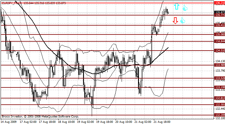 Я рекомендую открывать короткие позиции при пробое поддержки на уровне 135.77 по итогам часа, с целью снижения к поддержке на уровне 135.41 и в случае ее пробоя по итогам часа к 135.09. Стоплосс при данной стратегии можно разместить на уровне уровне 136.26.