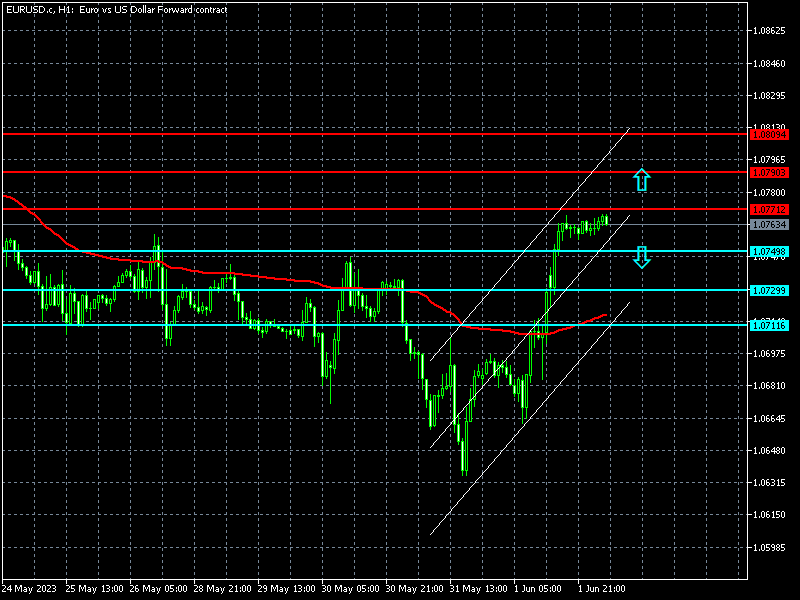 Пара EUR/USD торгуется в рамках восходящего ценового канала на часовом графике. Я рекомендую открывать длинные позиции в случае пробоя по итогам часа сопротивления на уровне 1.0771 с целью повышения к сопротивлению на уровне 1.0790-1.0809. Стоп ниже 1.0740.
