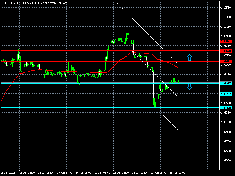 Пара EUR/USD торгуется в рамках нисходящего ценового канала на часовом графике. Я рекомендую открывать длинные позиции в случае пробоя по итогам часа сопротивления на уровне 1.0945 с целью повышения к сопротивлению на уровне 1.0967-1.0987. Стоп ниже 1.0890.